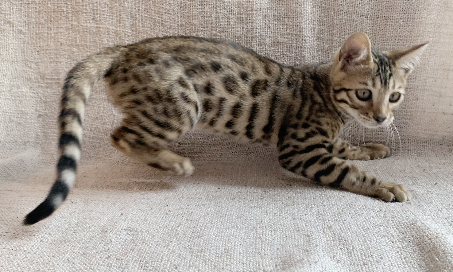 We have 2 pure bred Rosetta Spotted Bengal kittens available. They are 10 weeks old and ready to be rehomed. The kittens are drinking water, eating solids and are litter trained.