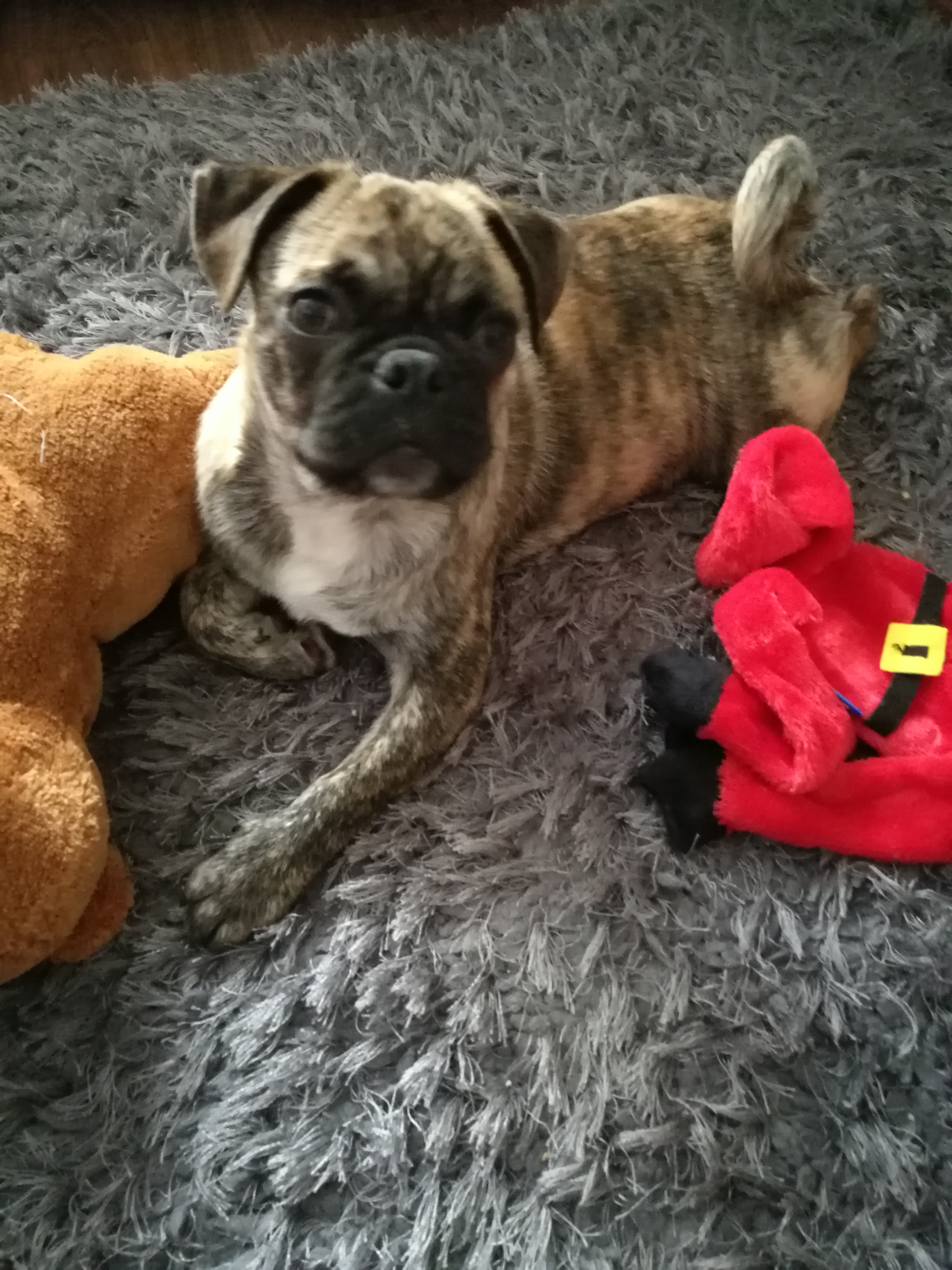 Having to sell my brindle 3/4pug, Monty is 4 months old but my older dog will not get on with him and it's causing lots of tension between them, he is microchipped and up to date with his injections and paper trained but will go outside too, he is a loveable and loving little dog who deserves to be happy, he walks lovely on his harness, he will be a great little dog for someone, he is good with dogs it's just my other dog isn't good with him so he would suit a home with other dogs or on his own, he has also been round cats if cats are used to energetic pups