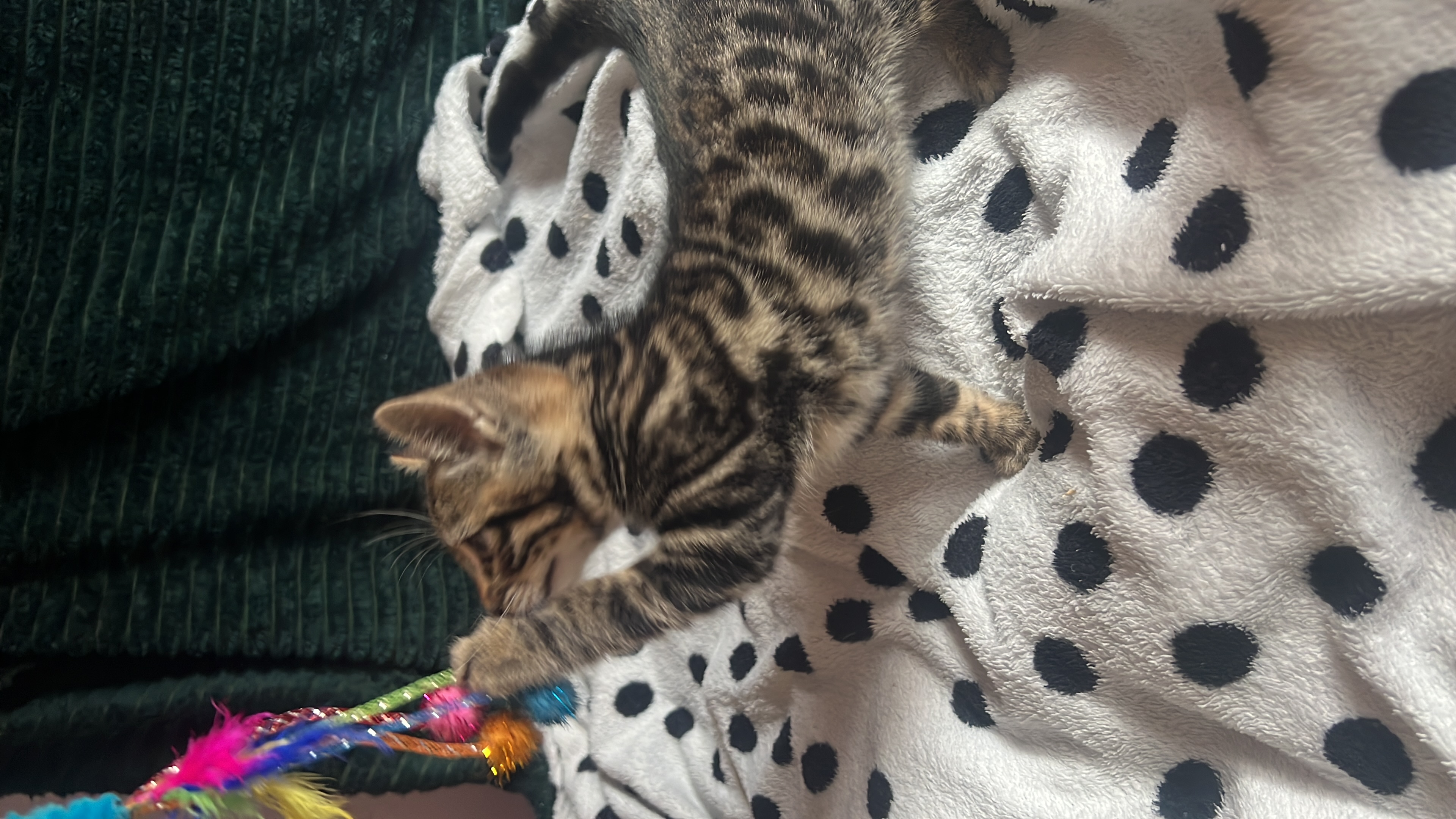 4 Bengal females ready to leave soon after 1 vaccination . Kittens will be flead, wormed, already litter trained. Eating solid food also . Growing with children . Kittens socialized also very playful &loved by us .