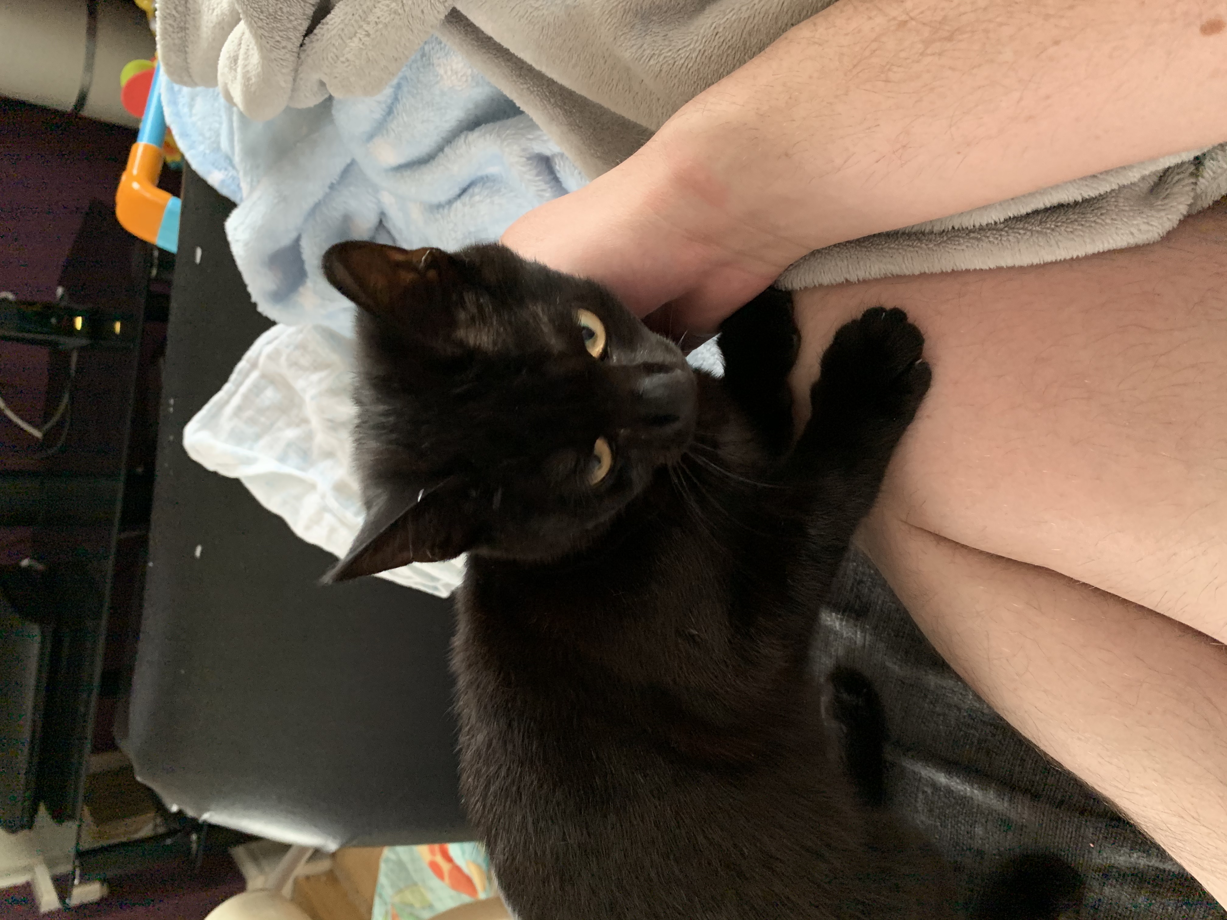 Kitten is called Lola she is under 9 months old. Very friendly and loving cat. She hasn’t had her jabs or been neutered. She is toilet trained. She comes with food. Litter tray With lid and scratch Matt. Great personality very loving and loves to play and have cuddles.
