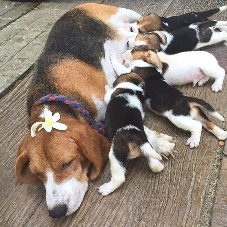 Our gorgeous Beagle gave birth to 5 beautiful puppies. Mum is a beautiful example of her breed. She is lovely, good companion and can be seen with puppies.Dad is a really handsome pure breed beagle.He has had extensive health testing and is free of all hereditary issues.