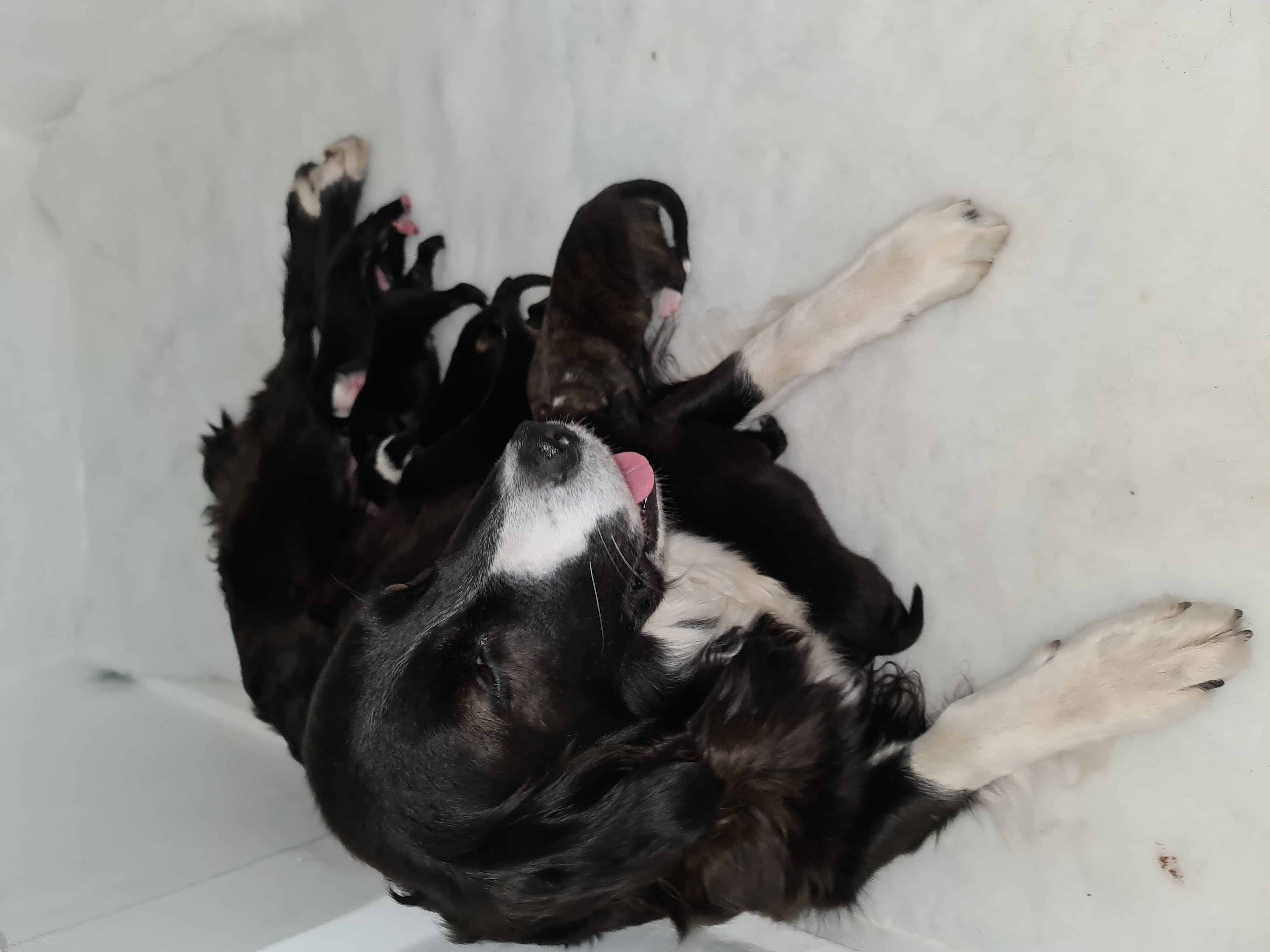We have seven Collie x Huntaway puppies for sale, four girls and three boys. They will be ready for their new home on 05/06/2021 and in person or digital viewing can be arranged for anytime. Both mum, dad and grandad are our pets and this is mum and dad's third litter. Mum is a medium size, 18kg, collie x springer spaniel and father is a large, 39kg huntaway. Going off the previous litters, the puppies' size will range between 20kg - 30kg. Mum and dad are healthy and beautiful natured which is why we decided to breed them. They both have unlimited access to the puppies. The puppies have free access to the whole kitchen and often to the garden. Because of this and as per their natural instinct they are almost already house trained. All my dogs and the puppies are raw fed and the puppies will leave my home with a week worth of raw food that will be frozen. The puppies will be health checked, vaccinated, microchipped and be treated against wormes and fleas. These puppies will grow up to be active and easily trainable adults. I strongly recommend in person viewing that can be accommodated in the garden to be covid safe. The deposit is £120.