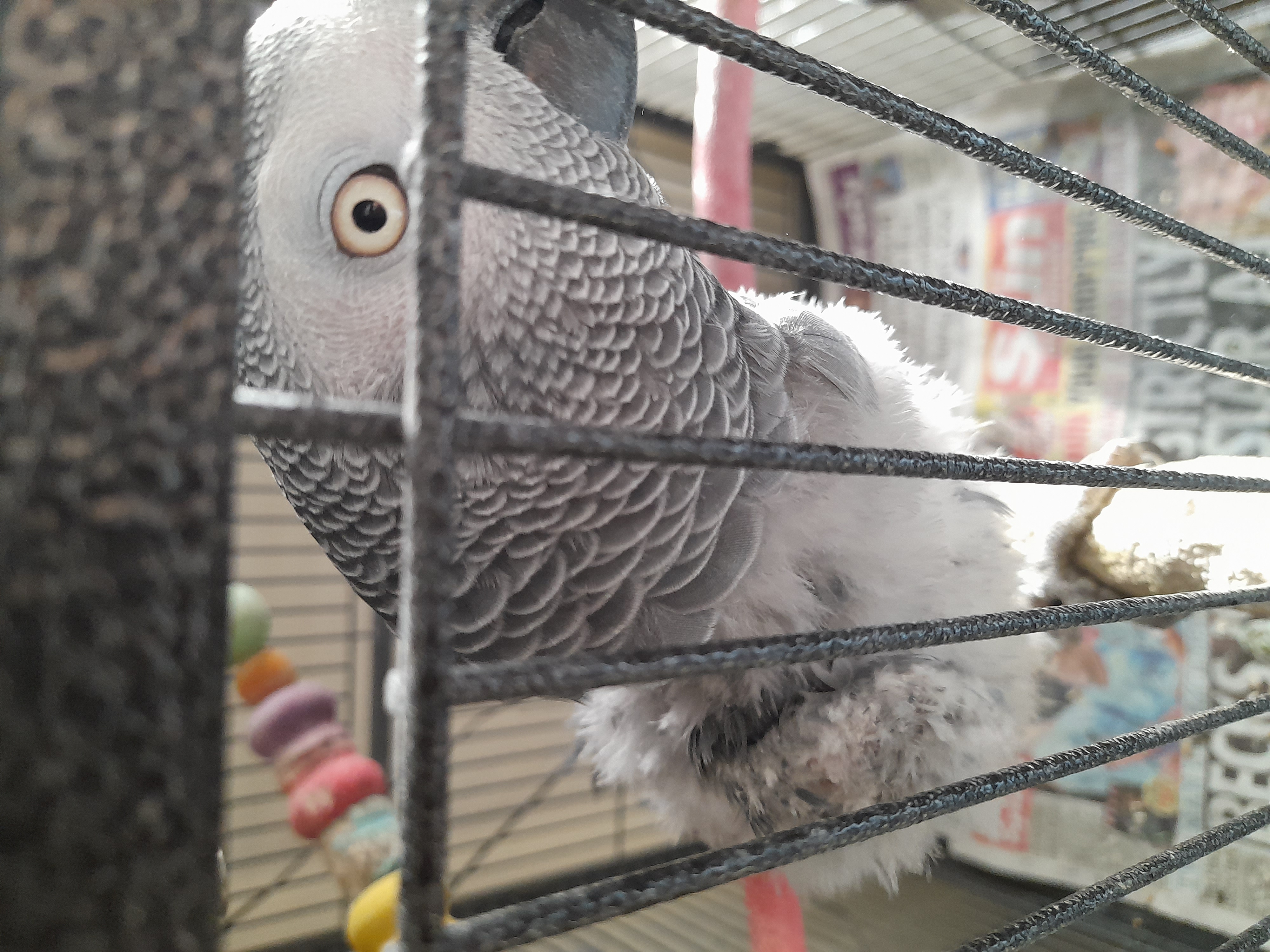 Due to circumstances we are looking after Guinness. His owner sadly passed away .he talks words once he gets to know you .he's a one person's bird .so we are looking for someone who can give him the time he comes with his cage toys food .