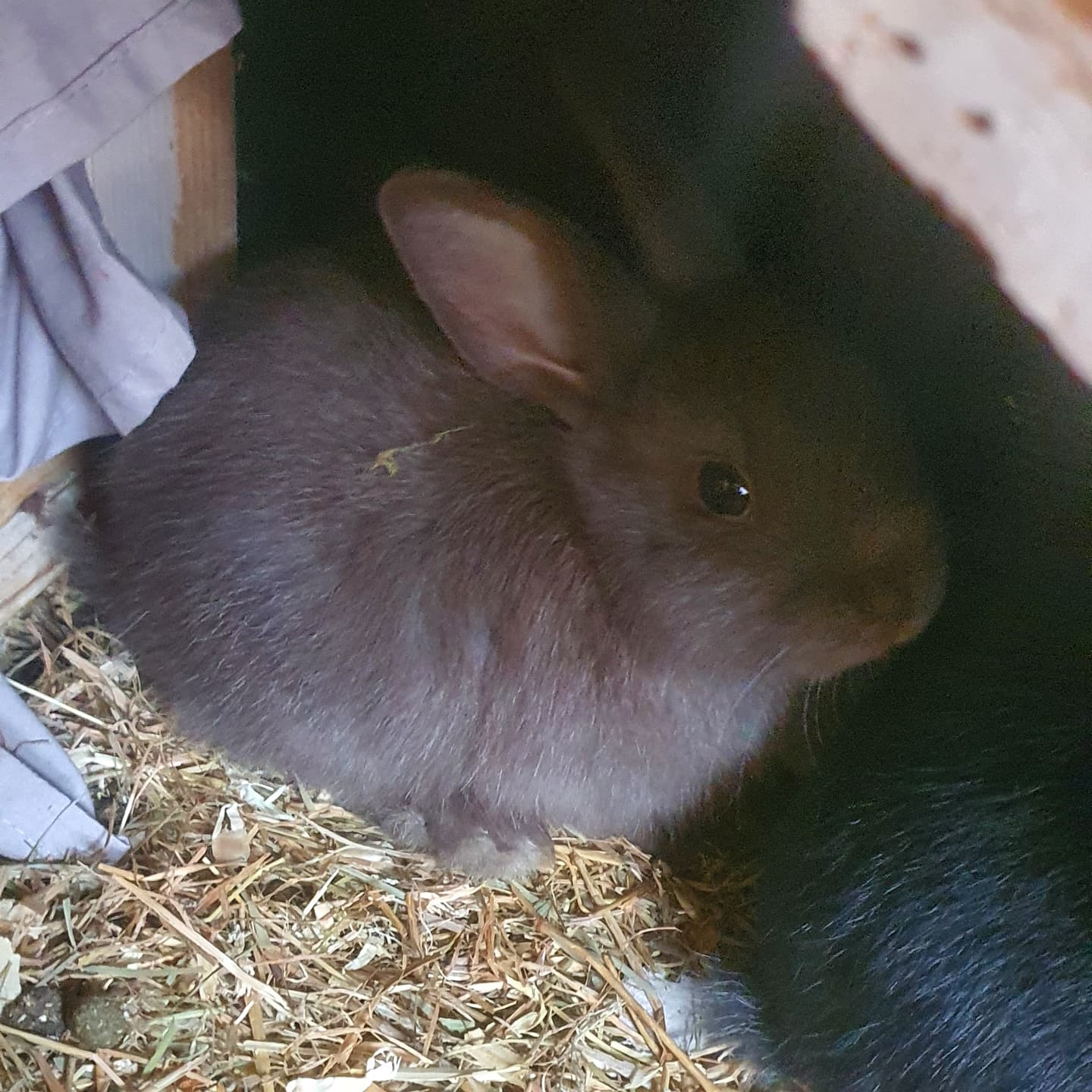 Baby rabbits for sale. Multiple colours does and bucks for sale. There are 5 left out of a litter of 7. 10 weeks old on Friday. Ready to.leave.