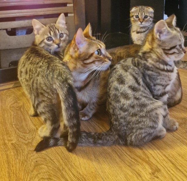 I have 2 stunning girl and boy available and ready to leave to their new homes.They have been raised in my family home with other cats and our 2 dogs,mum and dad are our family pets so are available to see upon viewing.The kittens are fully weaned,eating dry and wet food,litter and scratch post trained.