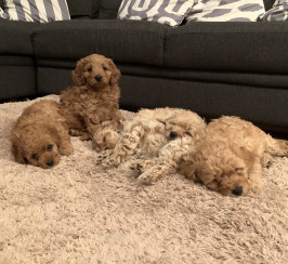 They are crossed with minature poodle so they are hypoallergenic which means they dont drop hair and are great for people and children with allergy’s to dogs and dint like hair all over the house.