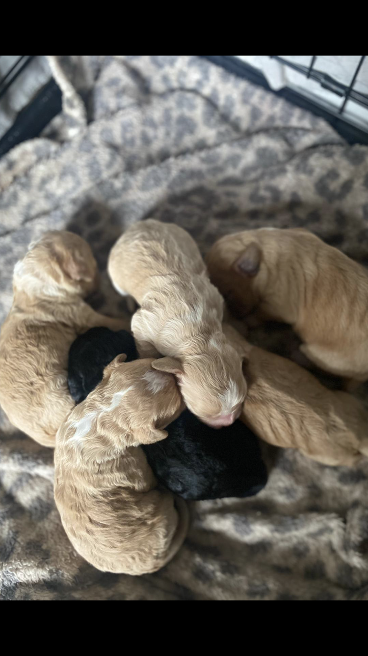 We’re delighted to say our beautiful Girl Callie has given birth to 6 Gorgeous F1 Cockapoos.