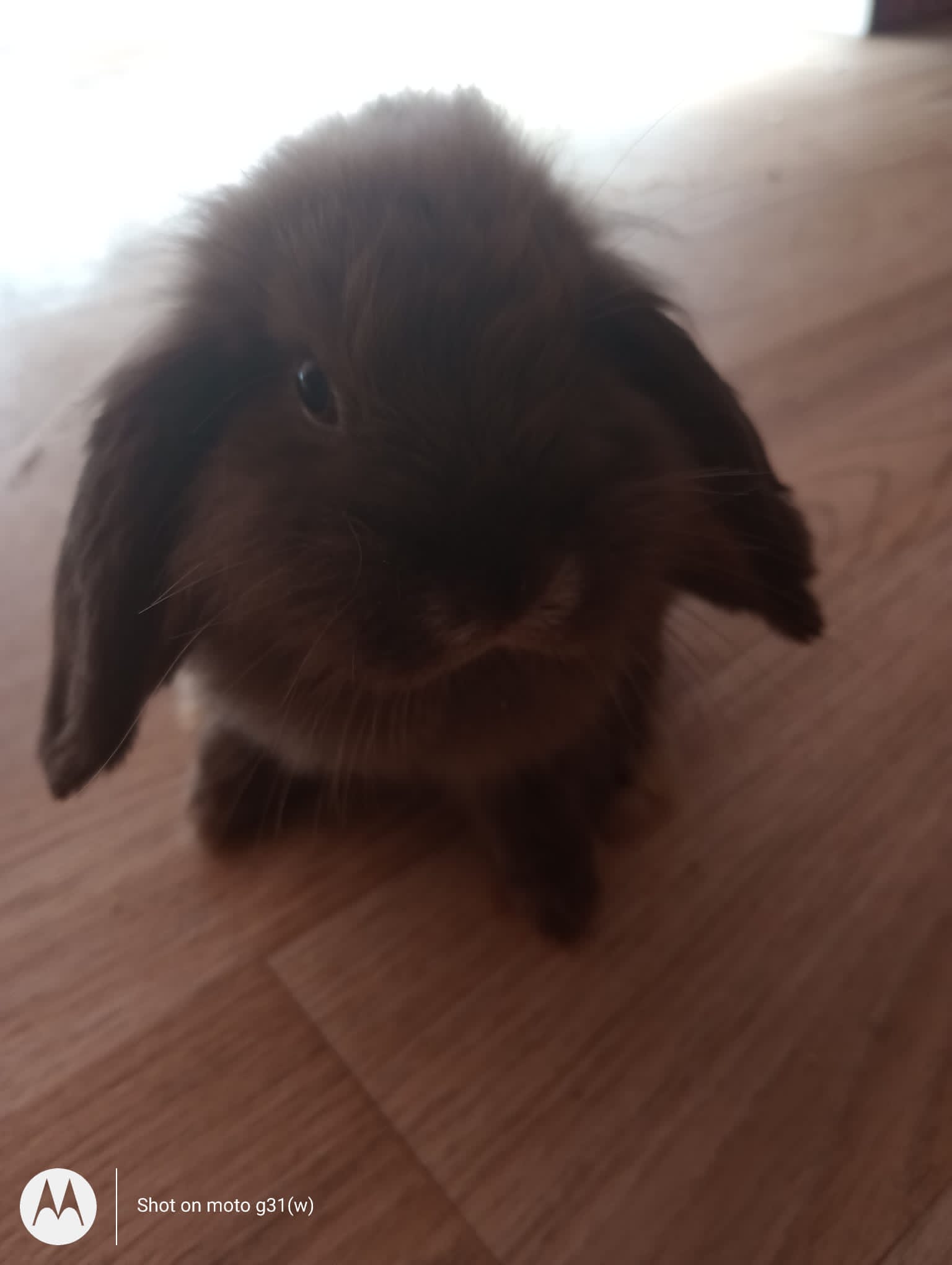 This lovely young bun, currently lives indoors, free-roaming with siblings. Loves to play and run and jump out. Likes to be cuddled. Muffin is a very curious bun that can get up to a bit of mischief and would suit a carer who has time to invest in bonding and play.