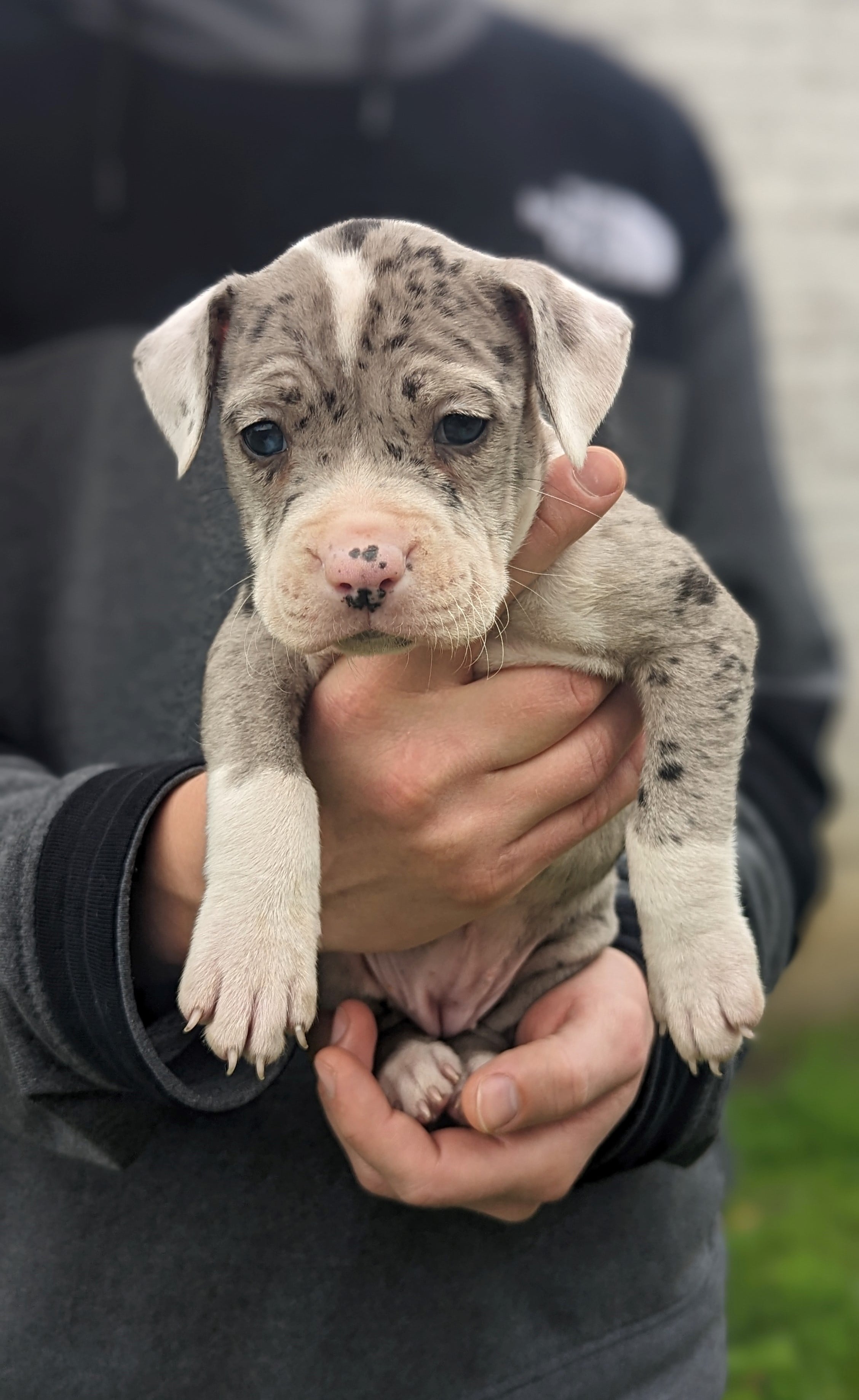 Diamond Blue Merle American Bully Puppies available for reservation.