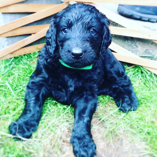 Puppies were born 29/04/17, available 26/06/17. Beautiful F1b pups, mother (Jet) is a very gentle, child friendly Golden Doodle (father Grey standard Poodle and golden retriever mother).