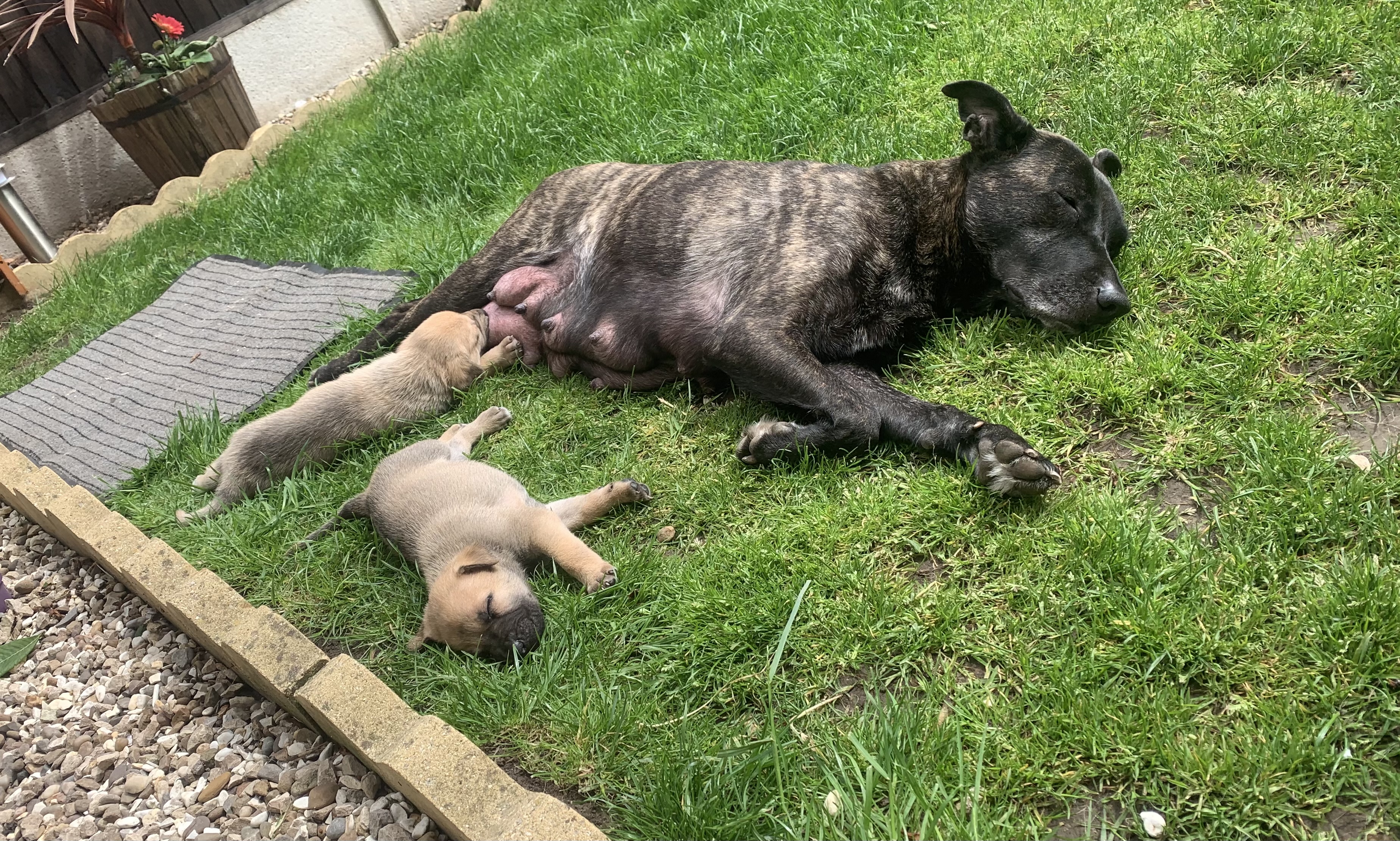 Mum is 50/50 brindle staff x shepherd