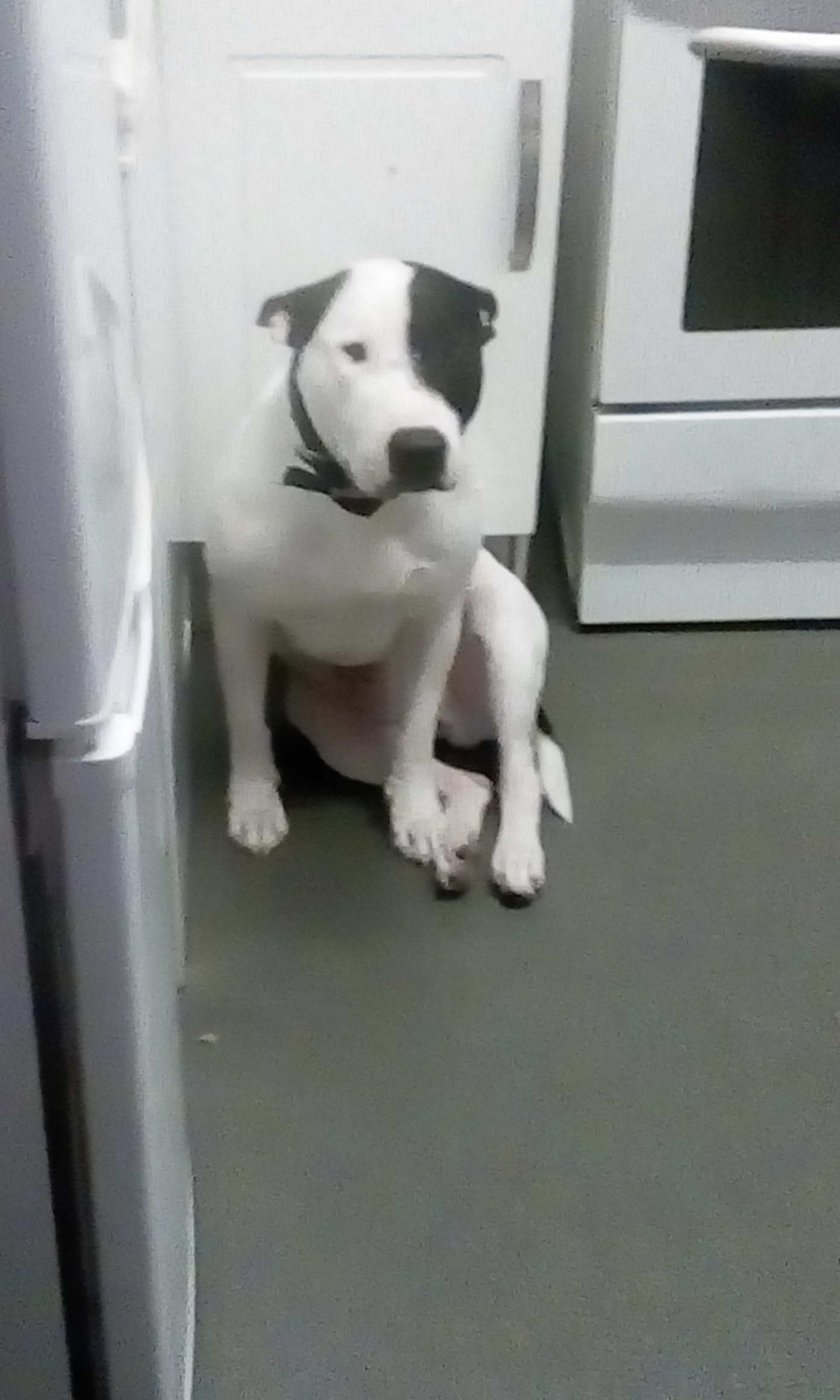Beautiful English bull cross , due to no fault to his own , having to rehome him , excellent family pet house trained , brilliant with kids , he been brought up with 5 the oldest child being 10 the youngest being 1 year old , hes is a very strong dog and doesn't like other dogs or cats , very sad to let him go but council downsizing me to a 2 bedroom house :(