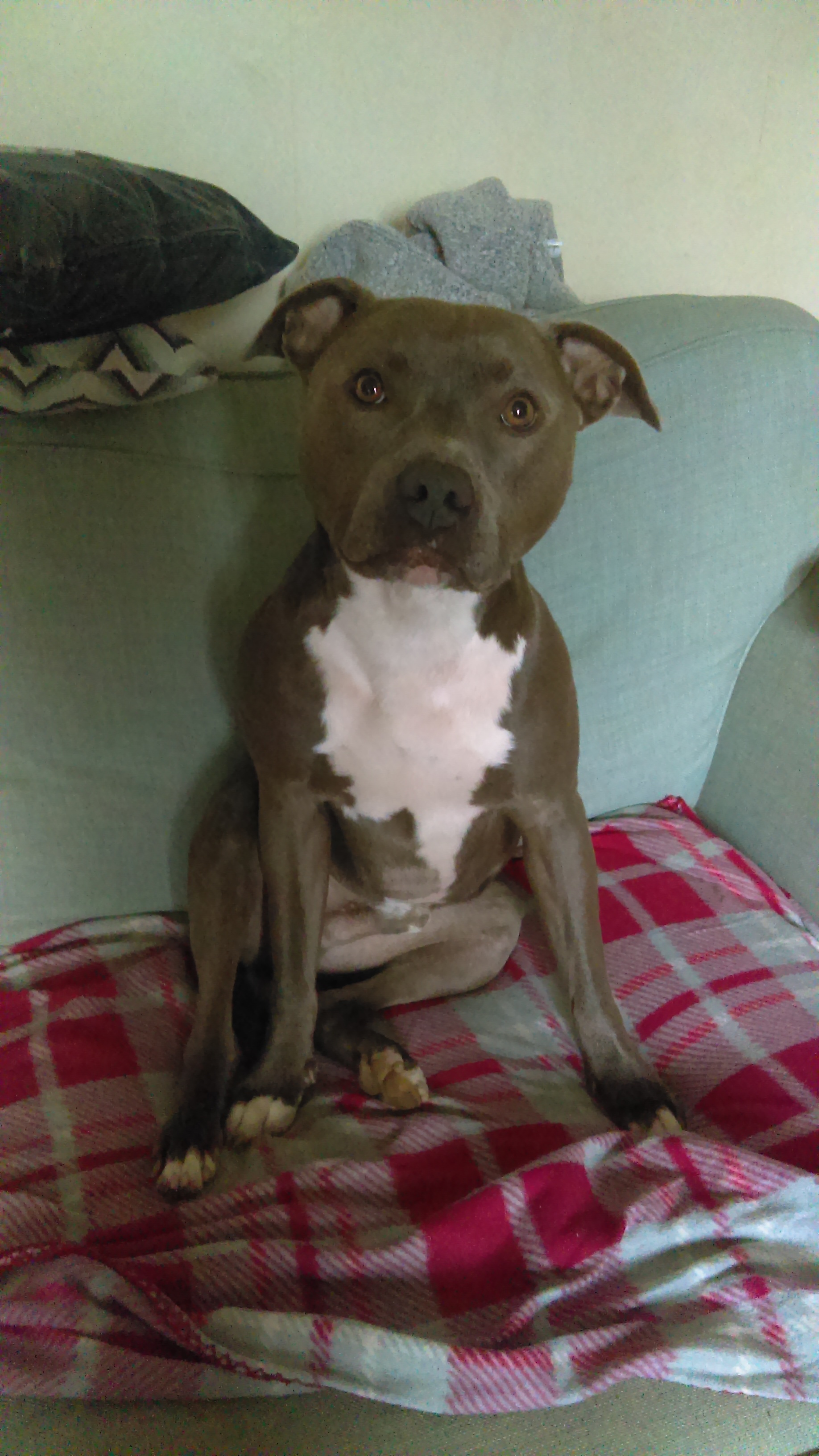 For sale is my 2 year old male blue staff 'BRONSON'. Amazing temperament good with people and kids although only likes certain dogs all depends on the other dogs energy. HATES cats. Up to date with all vaccinations etc micro chipped. Listens very well although CANNOT be walked off lead will not come back. We love him very much but just don't have the time he needs. He knows basic commands including 'speak'. He needs at least 2 X 30/45min walks a day as he is still in 'puppy phase' so needs slot of attention and fussing. He will come with all his toys, coats, collars, leads and Julius K9 power harnesses including one with weights recommended by vets to help tame his hyperactive personality. SERIOUS ENQUIRIES ONLY. if your garden fences are lower than 5ft he WILL jump them but only if he sees a cat or a fox. Price can be negotiated for the right home. We would love to keep him but we have a 5month old baby and I suffer from ptsd so it's just not fair on him. Any questions feel free to text 07864318357. TEXT ONLY he has no balls!!