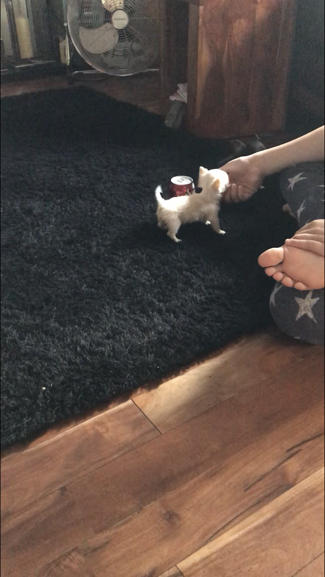 This little boy is so tiny with the biggest heart loves to run around and play he's wormed upto date is weaned from mum almost paper trained can still have a little mistake whilst playing about  as still only baby he has the most beautiful apple dome head he's short and tight a well put together pup please be aware this pup will stay small so he will get under your feet and into small places  both parents are longhaired and  can be seen