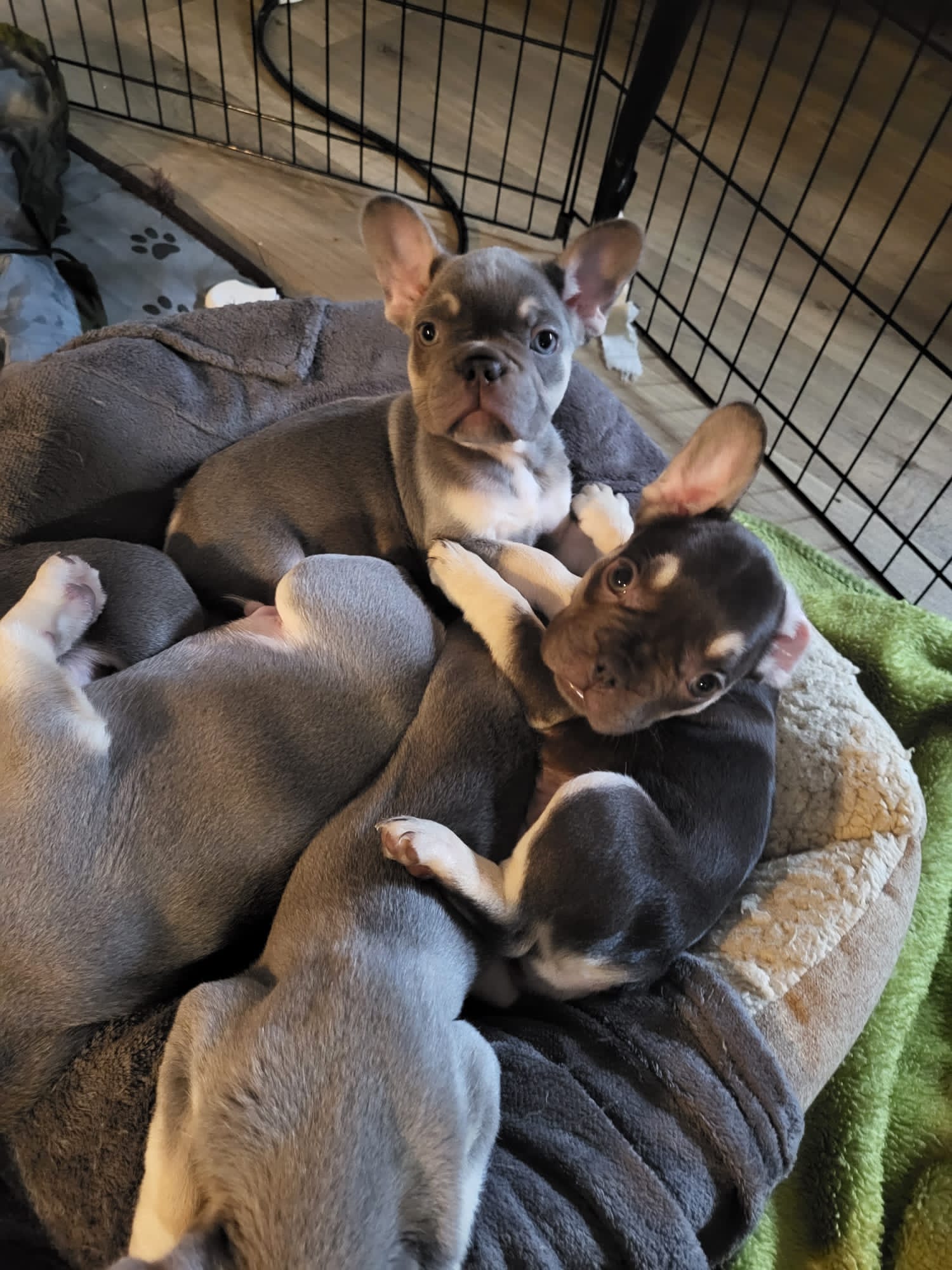 Two 9 week old French bulldogs puppies, one boy lilac and beige and one little girl brown and beige, both mum and dad Carrie the fluffy gene both are KC registered but puppies are not because I don't want them used for breeding.