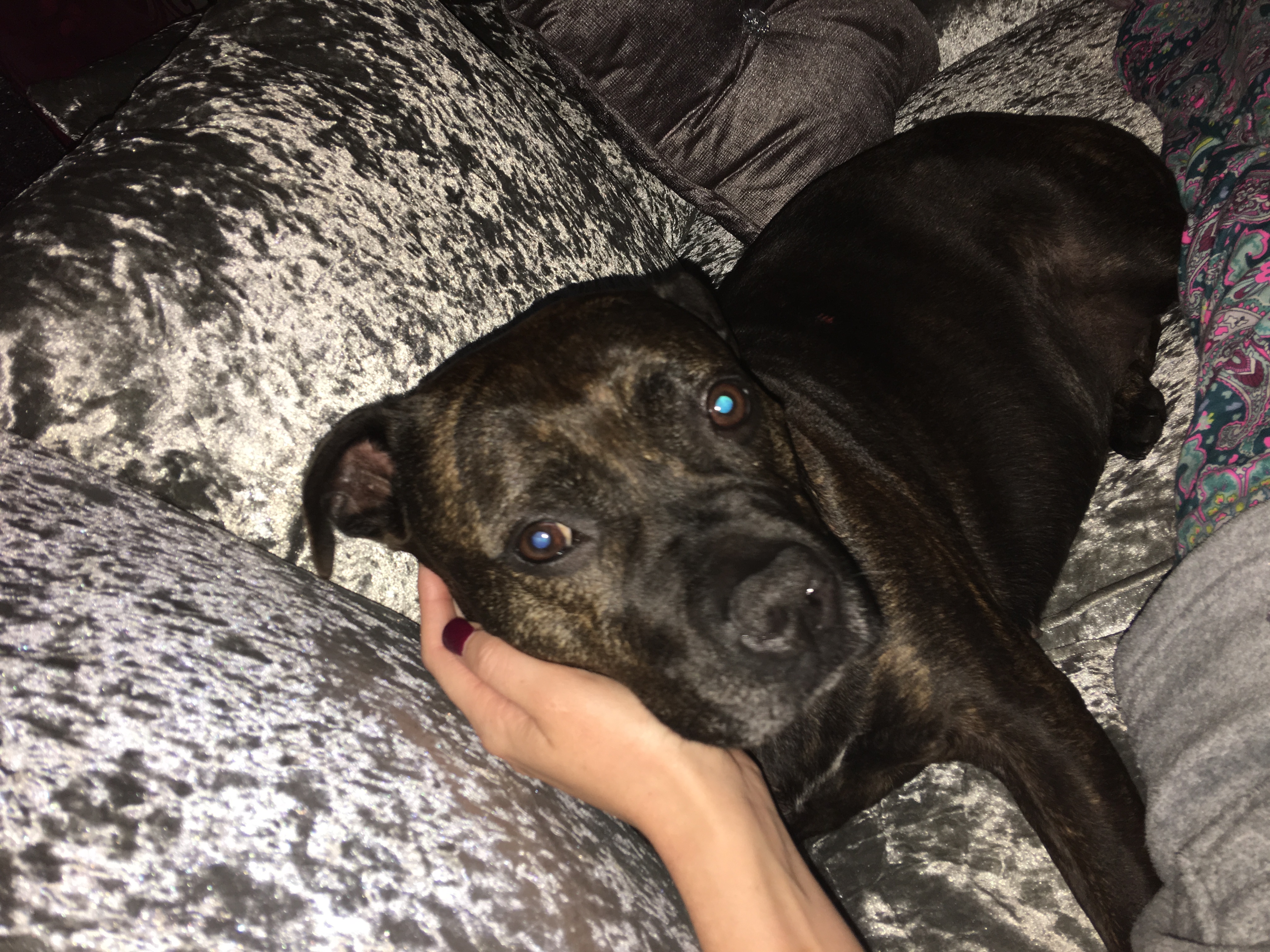 Molly is a beautiful, loving Staffie cross. Playful and lovely temperament.