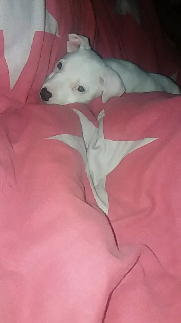 I've been wormed fleed microchipped I've also had my first injection I'm due my second in two weeks, I like to sleep on people and in a bed I do like a cage but a big bed is better, I like to pull on ropes I get on with other dogs . Anymore info please message