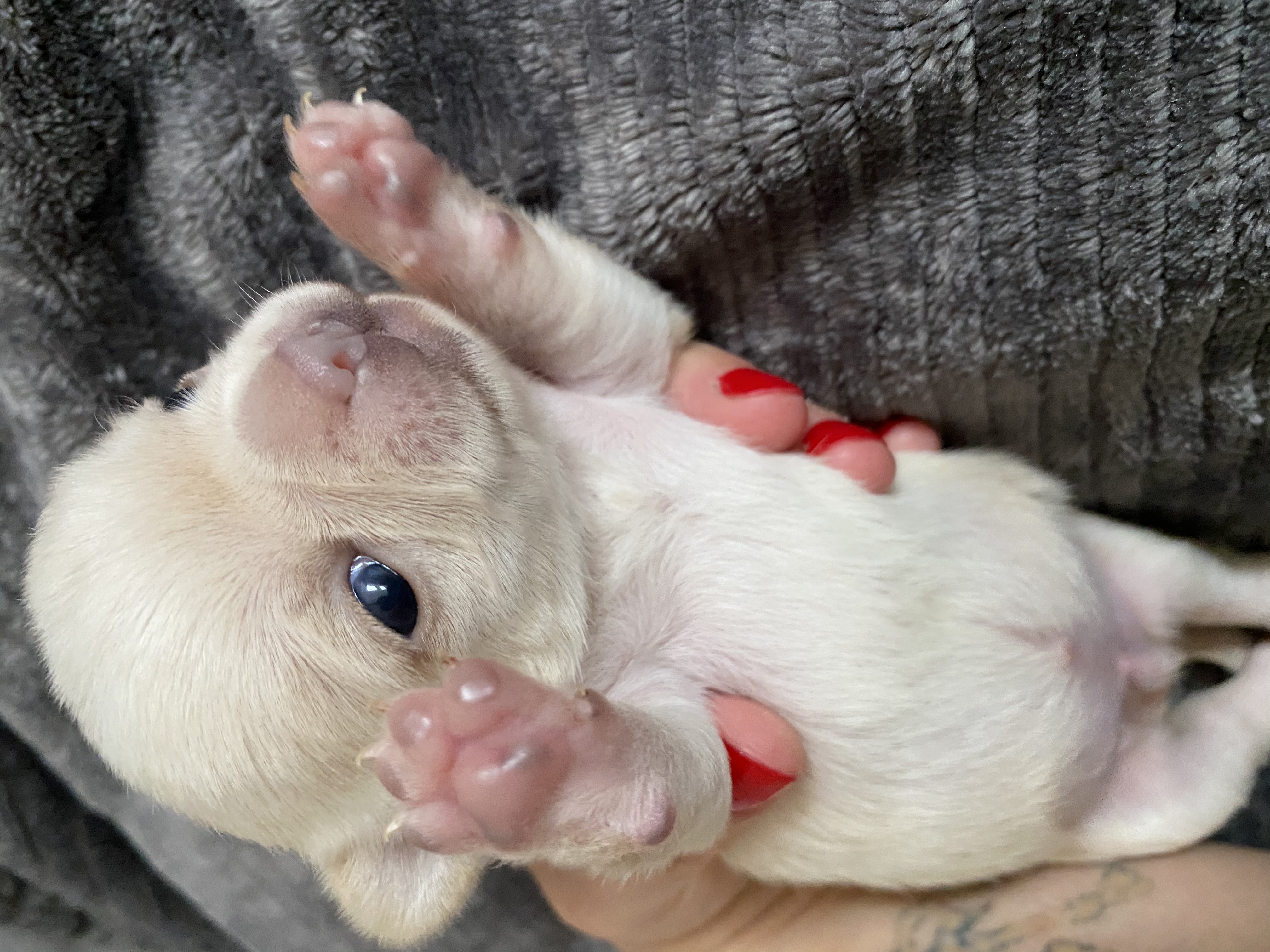 I have a beautiful cream - white with blue bloodline chihuahua boy.