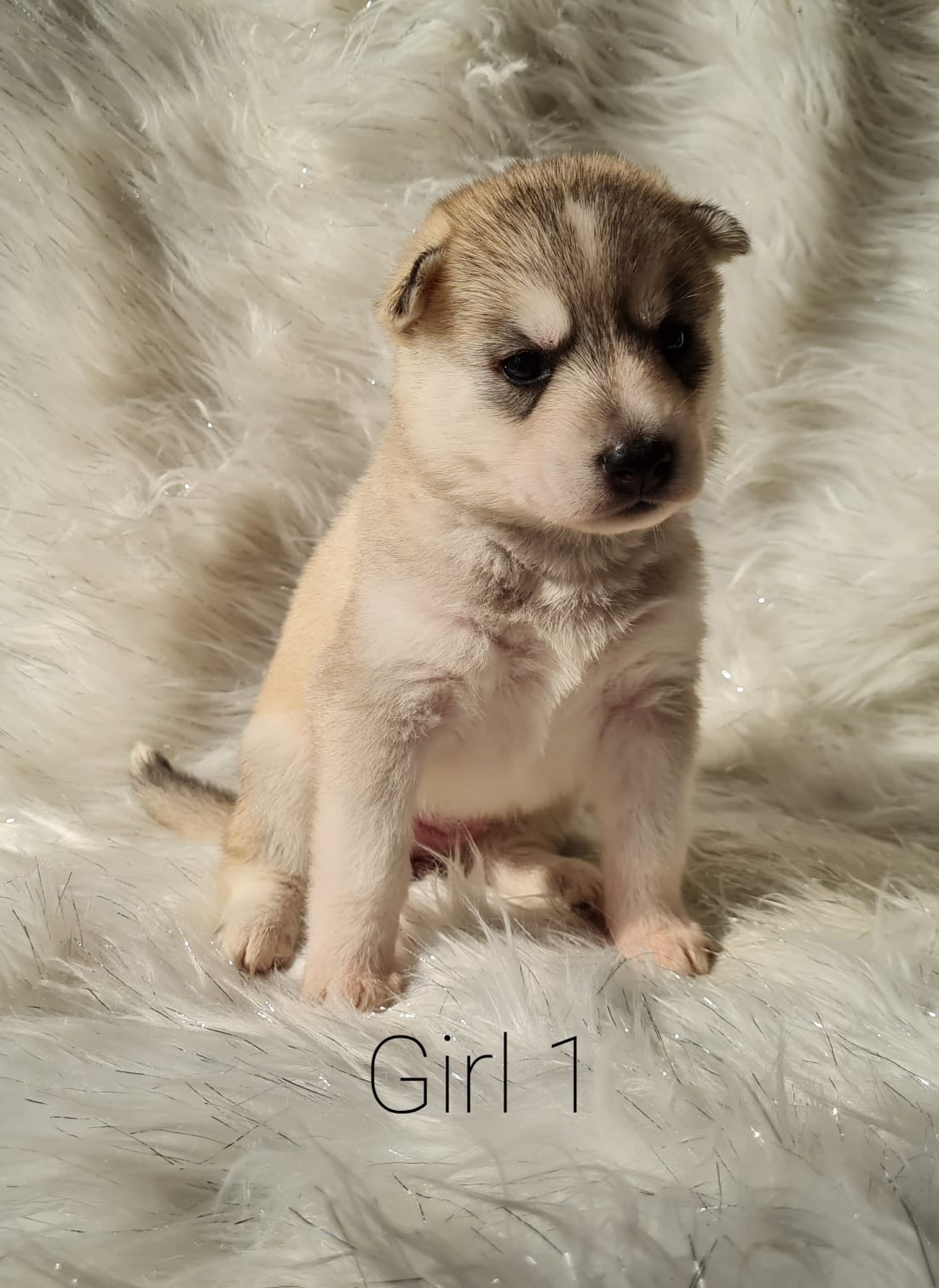 The litter consists of 3 boys and 4 girls. 2 of the boys are pure white ghost huskies. They are all chunky and cute ???? girl 3 has beautiful dark blue eyes. All puppies are handled daily by family and friends and they love to be cuddled. They are very playful and starting to show their funny personalities.