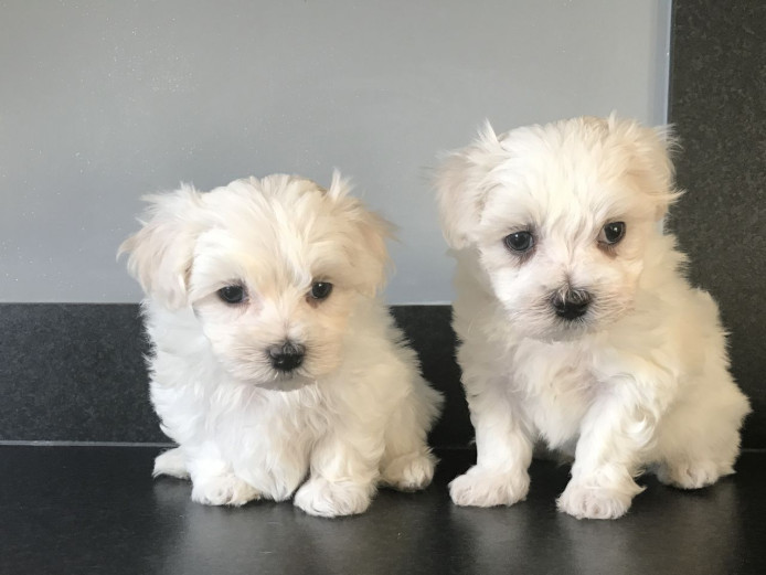 Our 2 beautiful pure white maltese puppies boys and girl puppies KC REGISTERED. Beautiful Male&Female Maltese Puppies Ready..READY now for their new homes, 10 weeks old,mum and dad can both be seen ,pups will be wormed,flead,vet checked,microchipped and pad trained and weaned onto solid foods.Our babies will follow a complete deworming and flea prevention program they will be well socialised with people and our other pampered pooches They will be well on their way with house training as we like to start puppy pad training asap to keep a clean home and environment for them.They will leave once they are inoculated and micro chipped Kc papers 5 generation certificate advice and support can be provided to the new owners we also like to keep in touch with the new owners and watch there new babies grow,pups will be ready for there new homes now at 10 weeks of age,Please email for more information email
