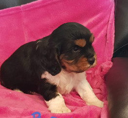 The Cavalier King Charles Spaniel is a direct descendant of the small Toy Spaniel that was popular among the nobility during the 16th to the 18th centuries as lap dogs and foot warmers. King Charles II was often seen with two or three Toy Spaniels with him. Historical accounts tell us that they were also used for attracting fleas from their owner’s bodies sparing them from diseases. There were years where the popularity of the breed among the royalty was overtaken by the Pug, particularly during the reign of William III. In the early part of the 18th century, a special strain of red and white Toy Spaniel became popular through the efforts of the Duke of Marlborough who bred them at the Blenheim Palace. These strains are what we know today as the Blenheim colour type. A Toy Spaniel club was formed with the advent of dog shows and with this came the first breed standard. The Kennel Club officially wanted to retain the name “Toy Spaniel” but King Edward VII wanted to retain the “royalty” of the breed and so “King Charles Spaniel” was adopted as the official name. In 1926, American Rowell Eldridge came to England looking for old-type Blenheim spaniels similar to what Charles II had on his portraits but failed to find one so he offered £25 at Crufts for whoever could produce a breed similar to that of Charles II’s era – long face, no stop with a flat skull and not domed with the unique spot on the centre of the head. He died without seeing the fruit of his efforts. Two years later, the Cavalier club was formed by breeders who continued his passion and thus the Cavalier King Charles Spaniel breed was born. After World War II, only 6 Cavaliers survived and all modern-day Cavaliers can be traced to those original six dogs. The Cavalier was officially registered by the Kennel Club as a separate breed in 1945. Today, they are the quintessential lapdog.