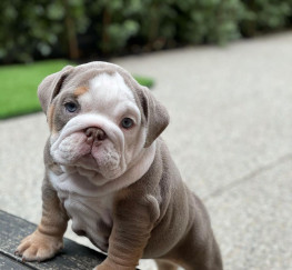 The iconic English Bulldog! A true English breed that symbolises strength, determination and loyalty. This medium-sized breed has a thick set smooth coat, a rather low stature, broad, powerful and compact. It has a relatively large skull which is a breed characteristic owing to its ancestry as a bull baiter during the Medieval times. The head is broad and square with well-rounded cheeks that extend sideways beyond the eyes. The flat forehead has slightly loose skin that forms fine wrinkles. A slightly visible furrow extends from a defined stop to the middle of the skull. It has a slightly wrinkled face covering the short, broad muzzle with large black nose and nostrils. It has thick and broad chops (flews) that cover the lower jaws on the sides which join the underlip in front. The square jaws form a pronounced mandibular prognathism (undershot) but the teeth are not visible when the mouth is closed. It has round, very dark, moderately-sized eyes which are situated low down in skull when viewed from front and ‘rose ears’ set high on the head. It also has a short tail, set on low that turns downwards, thick at the root then tapers sharply to a fine point. The neck of the Bulldog is thick, deep and strong with some loose skin on the throat that forms slight dewlap on either side. It has a broad, very powerful looking and muscular shoulder, well-rounded ribs and a tucked up belly. The front legs have large bones, thick, muscular, straight and set wide apart, slightly shorter than the back legs. The back legs are equally muscular with slightly bent hocks plus stifles that turn slightly outward. All four feet are round, medium-sized and compact with thick padding. Coat colours are brindle with various shades, white and piebald or with black mask or muzzle. Typical weight for dogs is 25 kg and 23 kg for bitches. Average height is between 31-40 cm.